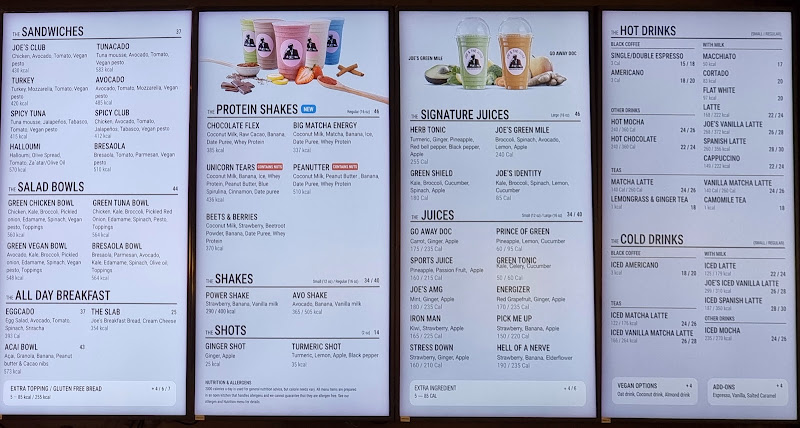 Joe & The Juice also provides vegan and allergy-friendly options, making it easier for you to enjoy healthy food and drinks safely. The menu includes clear information about ingredients, allowing you to choose meals or beverages that fit your diet and avoid allergens. By offering these options, the cafe makes sure that everyone can enjoy a satisfying and nourishing experience while exploring the full variety of the menu.